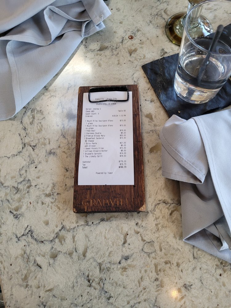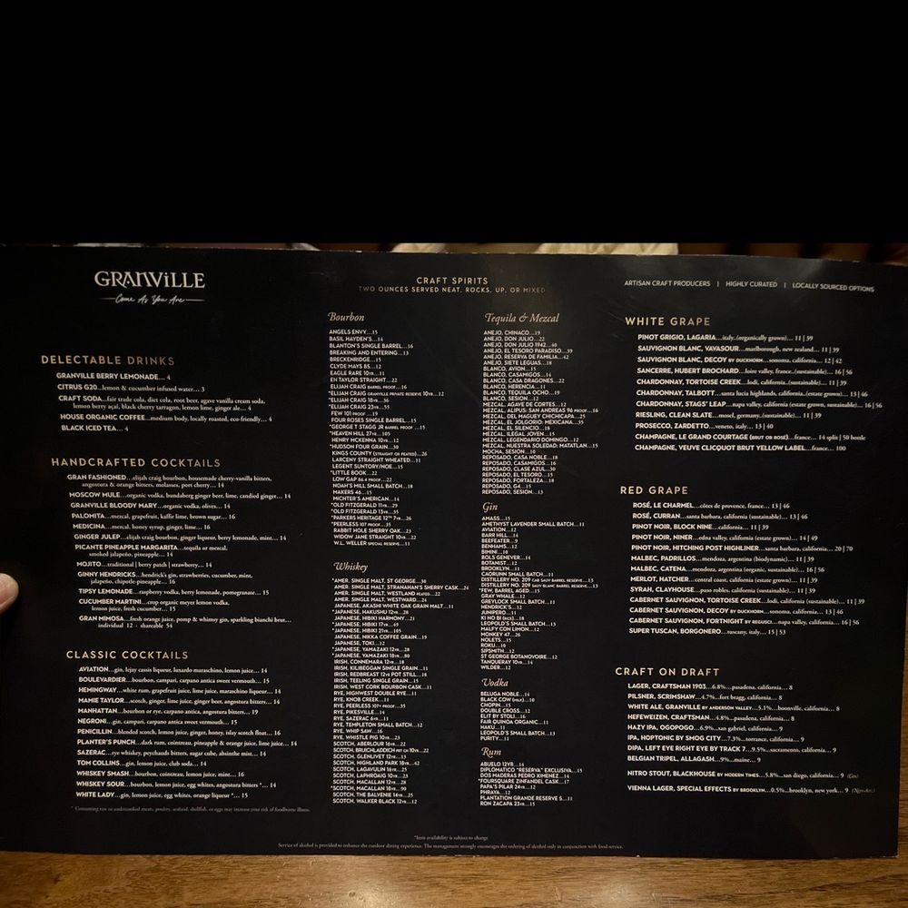Introducing GRANVILLE, a cocktail bar in Studio City, CA, offering New American cuisine with a casual, trendy, and classy vibe. This restaurant provides a range of options including Pescatarian, Vegan, and limited Vegetarian dishes. With amenities such as valet parking, outdoor seating, and happy hour specials, GRANVILLE caters to a diverse clientele. Customers praise the attentive wait staff and delicious food, with standouts like the Blue Bacon Burger and the Splitsville Trio Ice Cream dessert. The ambiance is described as chic and welcoming, perfect for gatherings with friends or business meetings. Overall, GRANVILLE offers a modern dining experience with a varied menu and excellent service, making it a go-to spot for brunch, lunch, dinner, or dessert.